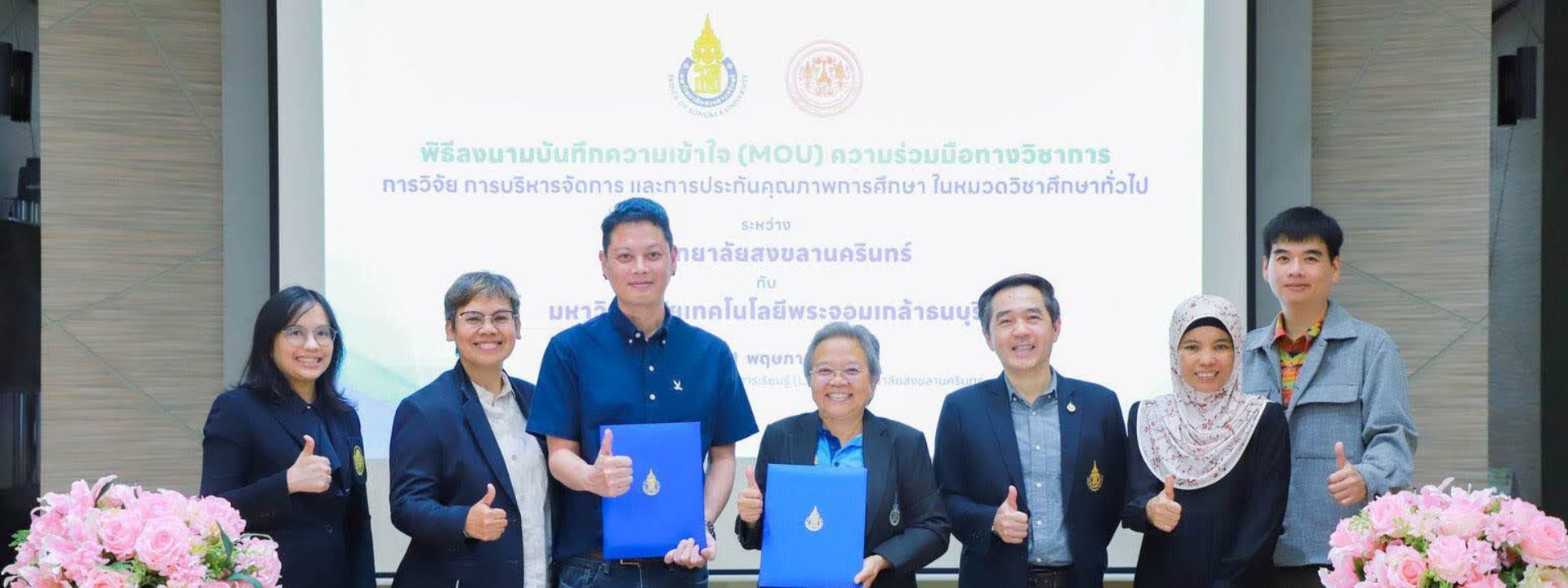พิธีลงนามความร่วมมือทางวิชาการ การวิจัย การบริหารจัดการและการประกันคุณภาพการศึกษา ในหมวดวิชาศึกษาทั่วไป ระหว่าง มหาวิทยาลัยสงขลานครินทร์ กับ มหาวิทยาลัยเทคโนโลยีพระจอมเกล้าธนบุรี