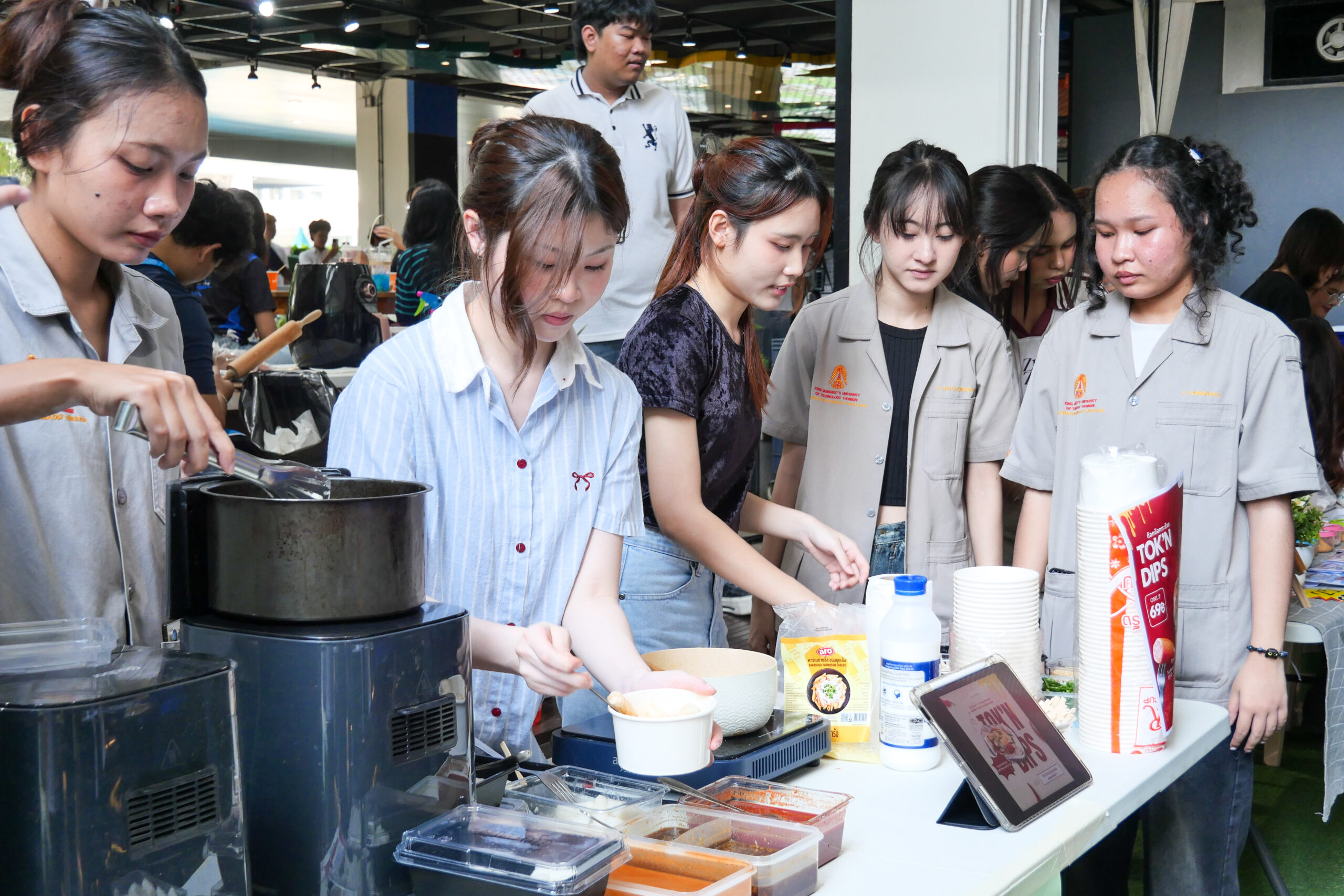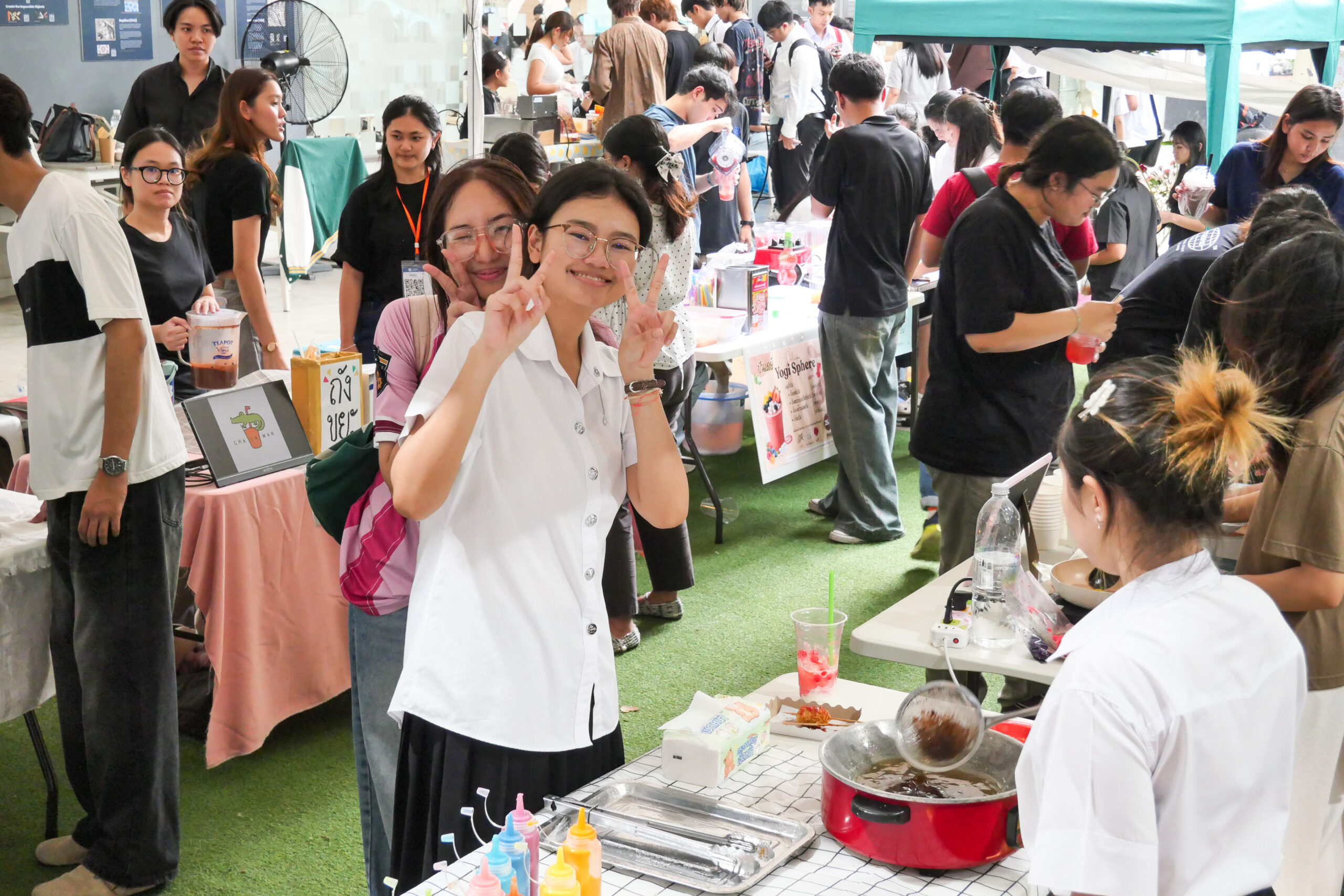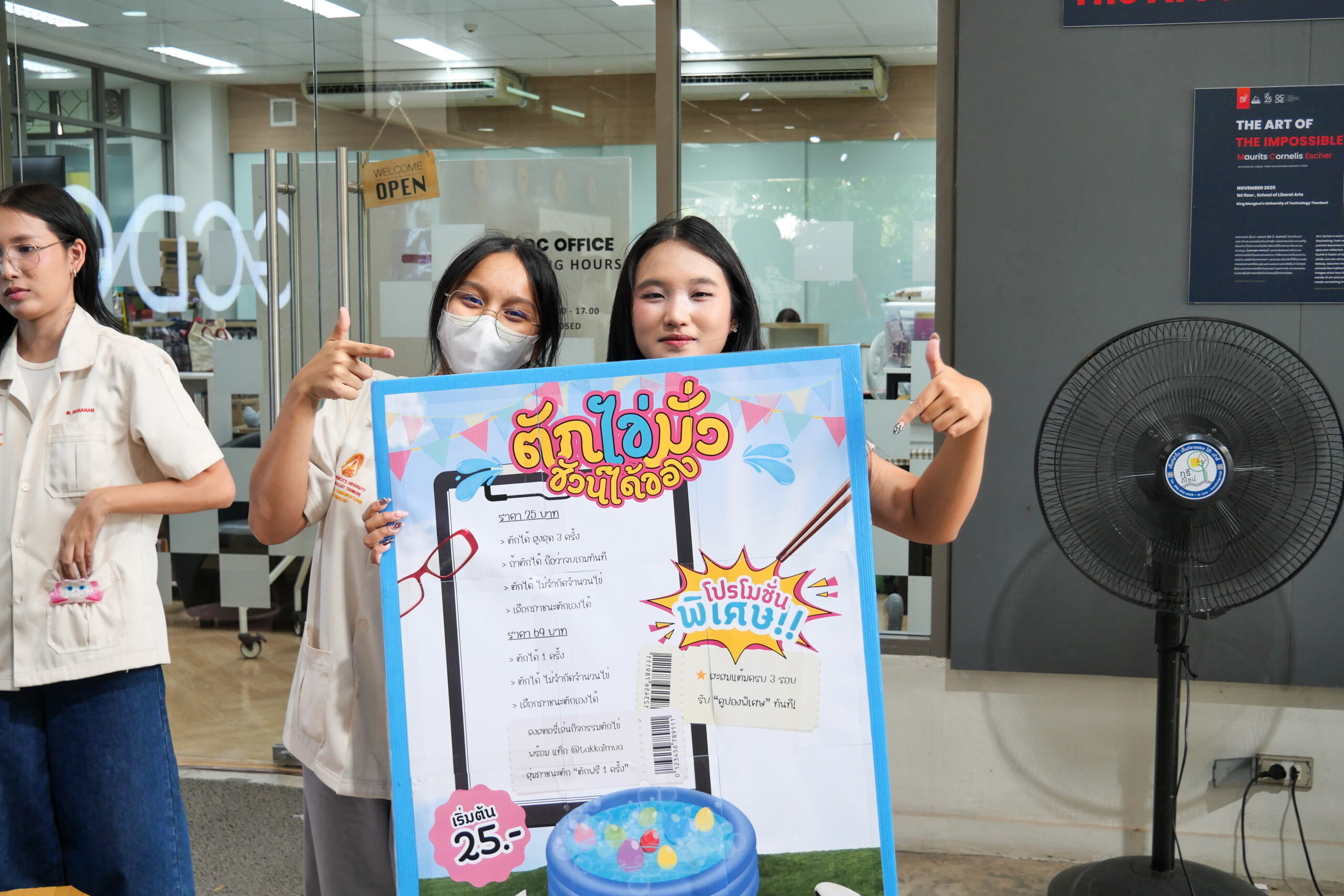เมื่อวันที่ 12-14 พฤศจิกายน 2568 สำนักวิชาศึกษาทั่วไป คณะศิลปศาสตร์ จัดโครงการ “ตลาดธุรกิจจำลองเพื่อส่งเสริมทักษะการบริหารจัดการและภาวะผู้นำของนักศึกษา” ภายใต้รายวิชา GEN 351 การบริหารจัดการยุคใหม่และภาวะผู้นำ โดยมุ่งเน้นให้นักศึกษาได้เรียนรู้กระบวนการและเครื่องมือต่าง ๆ ที่เกี่ยวข้องกับการบริหารจัดการและภาวะผู้นำ ผ่านการให้ความรู้ การทำกิจกรรมในชั้นเรียน และการทำโครงงานประจำภาคเรียน (Term Project) ในการพัฒนาแนวคิดของสินค้า/บริการตามความสนใจของกลุ่มนักศึกษา และนำมาทดลองขายจริงในตลาดธุรกิจจำลอง เพื่อนำองค์ความรู้จากการเรียนในห้องเรียนมาประยุกต์ใช้ในการปฏิบัติจริง (Experiential Learning) ความโดดเด่นของโครงการตลาดธุรกิจจำลองในปีภาคเรียนนี้ คือ การกำหนดธีมของสินค้า/บริการ ภายใต้ธีม “Bangmod 2569” (สินค้า/บริการ ราคา 25 บาท หรือ 69 บาท) เน้นสินค้า/บริการที่อยู่ในกระแส (เช่น สี แฟชั่น ความต้องการใหม่ ๆ อาหารที่ใช้วัตถุดิบนำเทรนด์) มีความสดใหม่ สดใส สนุกสนานต้อนรับปีใหม่ที่กำลังจะมาถึงเร็วๆนี้ โดยธีมดังกล่าวเป็นโจทย์สำคัญที่ท้าทายกระบวนการบริหารจัดการของนักศึกษาที่จะต้องวางแผน วิเคราะห์ต้นทุน ออกแบบกระบวนการบริหารจัดการและกำหนดกลยุทธ์ของสินค้า/บริการให้น่าสนใจสอดคล้องกับธีม เพื่อทำให้เป้าหมายของธุรกิจบรรลุผลตามที่กำหนดไว้