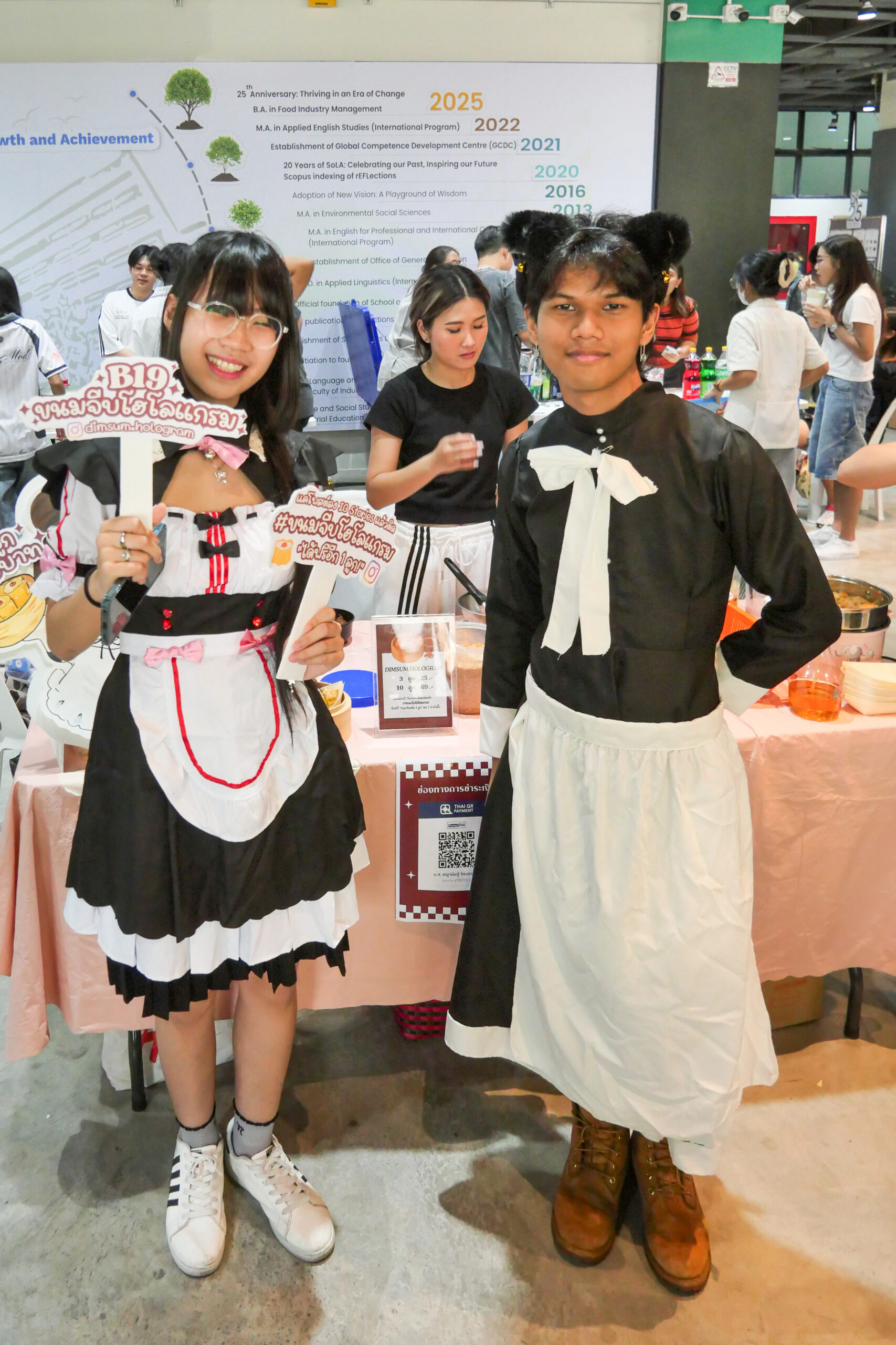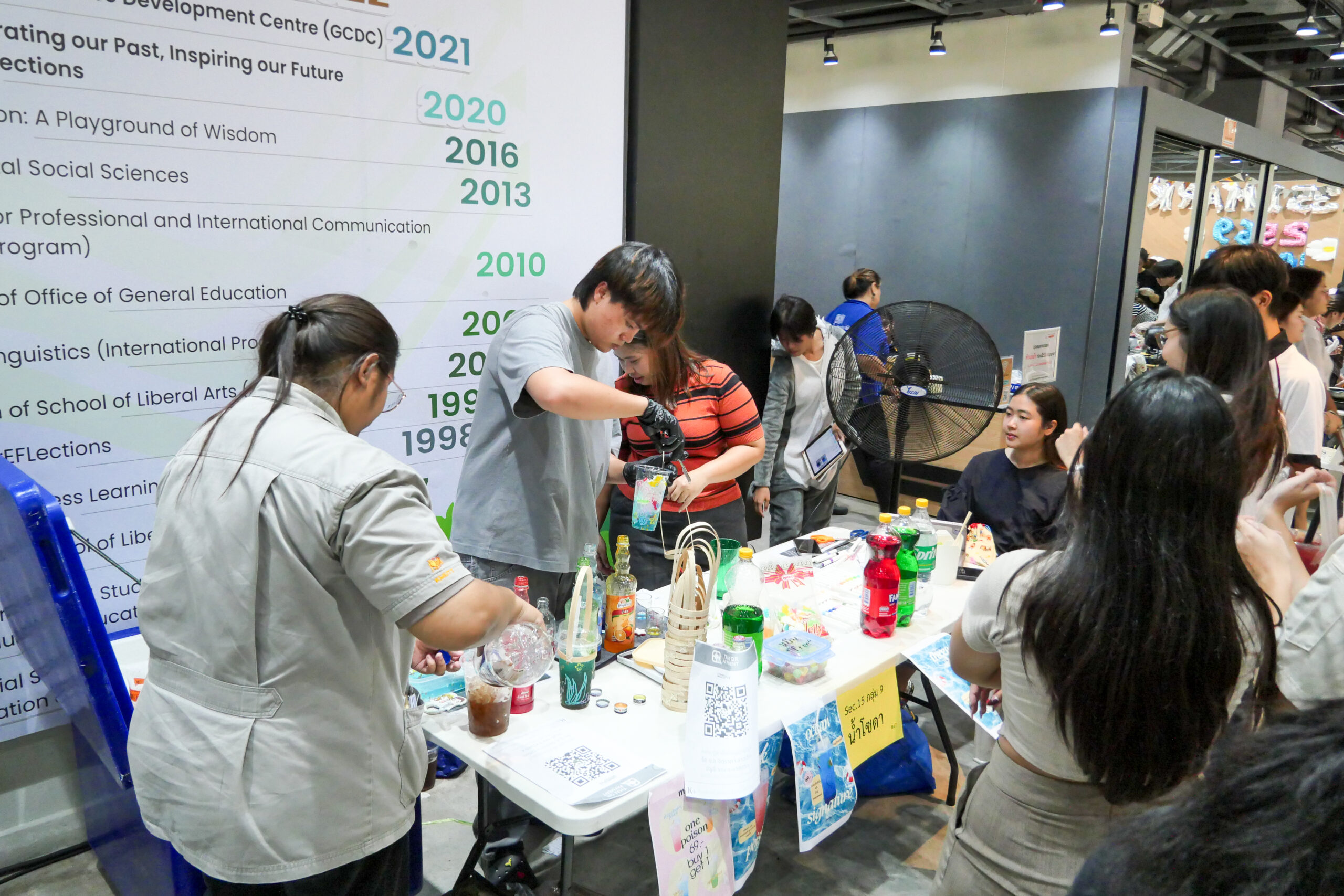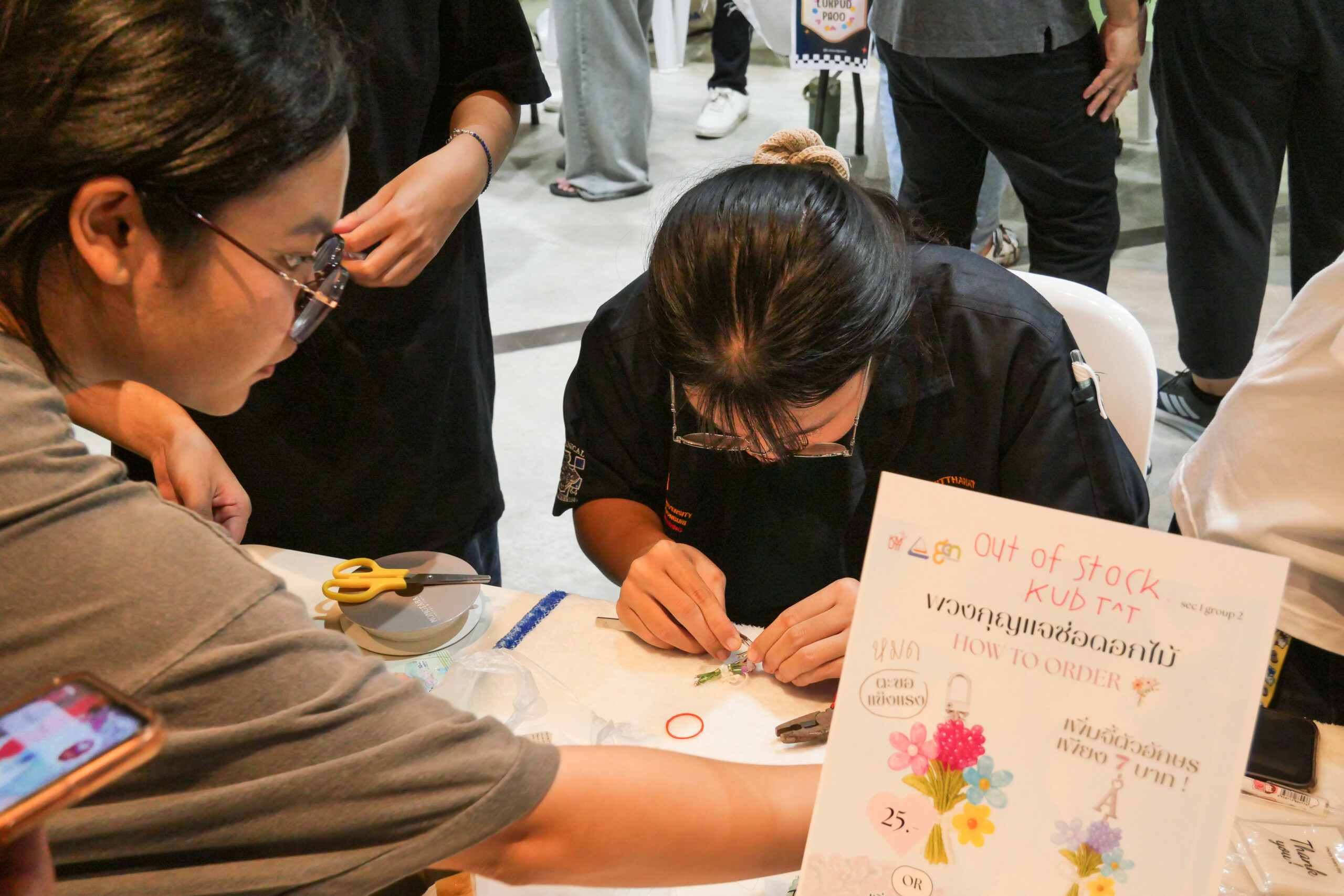 เมื่อวันที่ 12-14 พฤศจิกายน 2568 สำนักวิชาศึกษาทั่วไป คณะศิลปศาสตร์ จัดโครงการ “ตลาดธุรกิจจำลองเพื่อส่งเสริมทักษะการบริหารจัดการและภาวะผู้นำของนักศึกษา” ภายใต้รายวิชา GEN 351 การบริหารจัดการยุคใหม่และภาวะผู้นำ โดยมุ่งเน้นให้นักศึกษาได้เรียนรู้กระบวนการและเครื่องมือต่าง ๆ ที่เกี่ยวข้องกับการบริหารจัดการและภาวะผู้นำ ผ่านการให้ความรู้ การทำกิจกรรมในชั้นเรียน และการทำโครงงานประจำภาคเรียน (Term Project) ในการพัฒนาแนวคิดของสินค้า/บริการตามความสนใจของกลุ่มนักศึกษา และนำมาทดลองขายจริงในตลาดธุรกิจจำลอง เพื่อนำองค์ความรู้จากการเรียนในห้องเรียนมาประยุกต์ใช้ในการปฏิบัติจริง (Experiential Learning) ความโดดเด่นของโครงการตลาดธุรกิจจำลองในปีภาคเรียนนี้ คือ การกำหนดธีมของสินค้า/บริการ ภายใต้ธีม “Bangmod 2569” (สินค้า/บริการ ราคา 25 บาท หรือ 69 บาท) เน้นสินค้า/บริการที่อยู่ในกระแส (เช่น สี แฟชั่น ความต้องการใหม่ ๆ อาหารที่ใช้วัตถุดิบนำเทรนด์) มีความสดใหม่ สดใส สนุกสนานต้อนรับปีใหม่ที่กำลังจะมาถึงเร็วๆนี้ โดยธีมดังกล่าวเป็นโจทย์สำคัญที่ท้าทายกระบวนการบริหารจัดการของนักศึกษาที่จะต้องวางแผน วิเคราะห์ต้นทุน ออกแบบกระบวนการบริหารจัดการและกำหนดกลยุทธ์ของสินค้า/บริการให้น่าสนใจสอดคล้องกับธีม เพื่อทำให้เป้าหมายของธุรกิจบรรลุผลตามที่กำหนดไว้