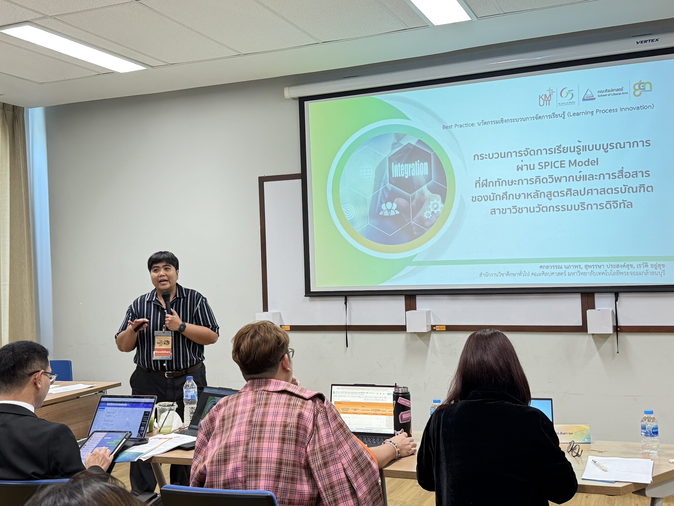 เรื่องที่ 1 กระบวนการจัดการเรียนรู้แบบบูรณาการ SPICE Model ที่ฝึกทักษะการคิดวิพากษ์และการสื่อสารของนักศึกษาหลักสูตรศิลปศาสตรบัณฑิต สาขาวิชานวัตกรรมบริการดิจิทัล โดย อาจารย์สุพรรษา ประสงค์สุข, ดร.ศกลวรรณ นภาพร และ คุณเรวัติ อยู่สุข